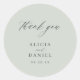 Elegante, minimalistisch-grüne Gastgeschenk Hochzeit bedankt sich bei einem Aufkleber mit einem stilvollen, schicken, trendigen Kalligraphieskript. +++++++++++++++++++++ Einfach mit Ihren Daten personalisieren! Geeignet für Hochzeiten in Urlaubsort im Kiefernwald.