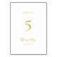 Diese schlichte Tischnummer aus Gold ist perfekt für Ihre moderne, minimalistische Weiß- und Goldhochzeit. Das Design besticht durch minimalen zeitgenössischen Gold-Schriftart, begleitet von formaler Kalligraphie. Behalt es so, wie es ist, oder wählen Sie es mit Ihren eigenen Kunstwerken oder Fotos zu personalisieren!