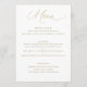 Einfache elegante Goldkalligrafie-Hochzeit Menükarte
