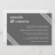 Eine einfache und elegante Hochzeitseinladung in mittelgrau mit weißer, dreifach ausgekleideter Ecke und weißem Text. Die Namen der Braut und des Bräutigams sind auf dem oberen links der Einladung mit den Einzelheiten der Hochzeit in einem modernen, rechtsbegründeten Rahmen sichtbar. Diese geschmackvolle Einladung ist eine wunderbare Wahl für Hochzeiten zu jeder Jahreszeit oder zu jeder Tageszeit. Das luxuriöse Farbschema Set den Ton für eine schöne Hochzeitsfeier. Sie können die Farbe dieser Einladung ändern, um Ihre Hochzeitsfarbe Schema, indem Sie "klicken, um weiter anzupassen" am unteren Rand der Textvorlage und wählen Sie eine andere Hintergrundfarbe.