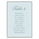 Einfache, elegante, hellblaue Sitzkarte Tischnummer