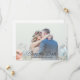 Eine schicke, elegante und einzigartige Foto-Overlay-Hochzeit bewahrt die Dattelkarte mit den in Schwarz-Weiß gehaltenen, handgezeichnet Blumen- und Blattskizzen und den in Aquarellblau und Pfirsichblau staubigen botanischen Blüten.