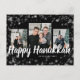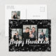 Einfache Elegante Holiday Postkarte Diese elegante Happy Holidays Postkarte bietet ein festliches Bild-Overlay aus weißen Schneeflocken mit weißem Text auf schwarzem Hintergrund mit einer Foto-Collage von 3 Bildern. Auf der Rückseite befinden sich ein 4. Foto und ein zusätzlicher Text für die Personalisierung.