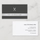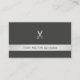 Elegante Visitenkartenvorlage mit dunkelgrauem Hintergrund, Imitaten silberne Schere und Streifen. Minimales, elegantes Design. Ideal für Friseur, Schönheitssalon.