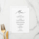 Lass deinen Gästen, was auf der Speisekarte steht, mit dieser eleganten 12x18-Menükarte, die ein schwarzes Drehbuch und ein elegantes Design aufweist.