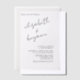 Behalt es einfach und stilvoll mit dieser eleganten Minimalistischen Schwarz-Weiß-Einladung Hochzeit. Dieses Design mit moderner Typografie und klassischer Kalligraphie-Schrift ist perfekt für jede Jahreszeit - Frühjahr, Sommer oder Herbst. Eine zeitlose Mischung aus traditionellem und zeitgenössischem Stil, diese Einladung Anzug jedes Hochzeitstils. Einfach mit Ihren eigenen Details anpassen, um einen einzigartigen Sake für Braut und Bräutigam zu schaffen. Eine schicke und raffinierte Wahl für Ihren besonderen Tag!