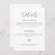 Erweitern Sie Ihre Einladungs-Suite für tropische Hochzeiten in Urlaubsort mit unserer einfachen, eleganten, minimalistischen Script-Eintrittskarte für die Hochzeitsdetails. Diese Karte ist perfekt für die Küstenbriden geeignet und bietet schlichte Akzente aus tropischen Blättern und ein sauberes, modernes Design. Sie bietet alle wesentlichen Details für Ihre Strandfeier.