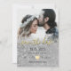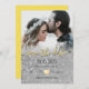 Einfache, elegante, moderne, schicke, gelbe und graue Hochzeit Save The Date Einladung mit Foto und silber Glitzer.