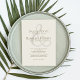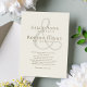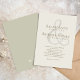 Dieses Design besticht durch seine grüne Einladung zur Hochzeit mit einem schlichten eleganten Stil, einem minimalen Ampersanddesign, einem klassischen klassischen Stil, einer modernen, minimalistischen Typografie mit traditioneller, heller Elfenbeincreme sowie einer soliden Farbe und Monogramm auf der Rückseite.