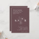 Feiern Sie die Liebe mit dieser eleganten Mohnhochzeit mit einer puristischen Monogrammgestaltung und einer anmutigen Blumenillustrierung auf einem warmen lila Hintergrund. Die zarten Botanischen Pappkuchen und die klassischen Serif-Schriftart sorgen für ein zeitloses, aber romantisches Ambiente, das sich perfekt für intime, gärtnerische oder rustikale Hochzeiten eignet. Personalisieren Sie die Namen, Datum, Uhrzeit und Veranstaltungsdetails, um Ihren großen Tag Anzug. Dieses einladende Design verbindet raffinierten Minimalismus mit künstlerischem Charme und schafft eine moderne und dennoch herzliche Note für Ihre Hochzeitsfeier.