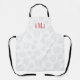 Dieses Design besticht durch eine schlichte, elegante Monogramm-Schürze mit weißem silberfarbenem Schneemuster, einen stilvollen mit Monogramm Erstnamen, eine kreative vereinfachende Eleganz niedlich, einen einfachen Schriftart mit Blockschrift, sanften Schneefall-Stil, Weihnachtsküche-Koch-Geschenk, maßgeschneidertes personalisiertes Geschenk, einen zeitlosen Klassiker, ein klassisches, chasses Rot und weiß