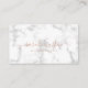 Elegante Visitenkarten mit der Unterschrift mit Swashes in einer handgeschriebenen Skriptkalligraphie zusammen mit Ihrem Titel in Imitate Rose Gold über einen marmorfarbenen Hintergrund. Die Rückseite hat Ihre Kontaktinformationen. Dieses einfache und minimalistische Design ist ideal für Makeup-Künstler, Haar-Stylistin, Lashes, Beauty / Nail Salon oder jede Frau im Besitz von Unternehmen.