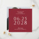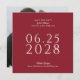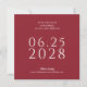 Eine schlichte, elegante und geschmackvolle Hochzeit bewahrt die Dattelkarte in einem schönen, reich roten mit hellen ecru-Text und verfügt über ein Foto des glücklichen Paares auf der Rückseite der Karte. Die Textvorlage lässt sich leicht mit Ihrer Info ausfüllen und das Datum wird in einem großen, fett gedruckten Text angezeigt, um Ihre zukünftigen Hochzeitsgäste bei der Planung Ihres großen Tages zu unterstützen. Die einzigartige quadratische Form dieser Karte verleiht dem Gast einen modernen Stil und verlasst einen hübschen Eindruck.