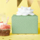 Candy Streifen sind ein vielseitiger Klassiker, ideal für alles, von Geburtstagen über Weihnachtsfeiertage bis hin zu alltäglichen Geschenken! Diese Geschenkpackung weist ein einfaches, dünnes diagonales Streifen-Muster auf, mit der Option, die grüne Hintergrundfarbe mithilfe des Designeditors zu ändern. Für ein traditionelles Ambiente sollten Sie es mit Jute-Saiten verbinden oder einen luxuriösen Bogen für ein raffinierteres Aussehen hinzufügen! Erhältlich auf hochwertigem Papier mit matt oder glänzend Oberfläche. Druckfarben: grün und weiß.