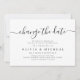 Modernes Drehbuch "Ändern Sie das Datum" in schwarz-weiß, mit optionalem Paar-Bild auf der Rückseite, einfach und elegant, informieren Ihre Hochzeitsgäste die aktualisierten Informationen mit dieser Ankündigung. Alle passenden Teile in der Sammlung anzeigen