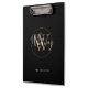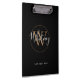 Einfache elegante schwarze goldfarbene und weiße Script Monogramm Clip-Board. Personalisieren Sie zunächst den Namen und das Monogramm, um Ihr eigenes einzigartiges Design zu erstellen. Entwickelt von Thisisnotme©