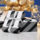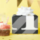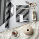 Elegantes Schwarz-, Grau- und Weißpapier mit Monogramm-Umhüllung. Ideal für Geschenkverpackungen. Abschluss, Hochzeit, Geburtstag.