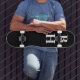 Elegantes Schwarzweiß-Monogramm-Skateboard. Perfekt zum Geburtstag. Personalisieren Sie Ihre Eingabe und Ihren Namen.