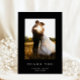 Erweitern Sie Ihre Wertschätzung mit den Simple Elegant Black Danke Cards. Diese Karten spiegeln die Raffinesse der Hochzeitseinladung wider und zeichnen sich durch einen schwarzen Hintergrund, eine klassische Serifenschrift, ein personalisiertes Foto des Ehepaares und individuelle Name aus, um den stilvollen Dankesausdruck zu erhalten.