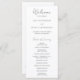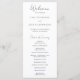 Klassisches Schwarz-Weiß-Hochzeitsprogramm mit einem schlichten Design und einer modernen, minimalistischen Touch. Akzente Wörter sind in einer eleganten Skripttypografie und der übrige Text ist in einem klassischen Serif-Schriftart.