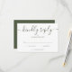 Eine einfache, elegante olivgrüne Signatur-Skript RSVP-Karte mit Ihren Details Set in schicken Typografie. Entwickelt von Thisisnotme©