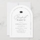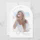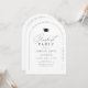 Schwarz-Weiß-Einladung Abschluss bietet moderne Schrift und Bogen-Rahmen, mit Foto auf der Rückseite, elegant und minimalistisch. Stellen Sie es mit Ihren eigenen Foto- und Abitur-Party-Informationen ein.