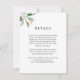 Einfach und elegant, diese moderne Hochzeitsinformation-Karte, die verwendet wird, um Ihren Hochzeitsgästen Details, Hotelunterkünfte, Ihre Hochzeitswebsite oder andere nützliche Informationen rund um Ihre Hochzeit zur Verfügung zu stellen. Es verfügt über eine Aquarellecke mit Grünpflanzen und winzigen, pfirsichfarbenen Knospen. Personalisieren Sie den Beispieltext, der in der Textvorlage angezeigt wird, mit den gewünschten Details. Diese Karten können als Gehäuse mit Ihrer Hochzeitseinladung geschickt werden. In diesem Design steht Ihnen eine Reihe von passenden Büroartikeln zur Verfügung, um Ihre Hochzeit oder Veranstaltung im schönen Stil zu koordinieren.