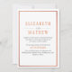 Einfache elegante weiße Kupfer Orange moderne Hochzeitseinladung. Mit elegantem modernem Typografie-Design. Kupferorange- und Holzkohletext auf Weiß mit dünner Kupferrandung und rückbedrucktem Original-Farbdruck in Orange-Kupfer, modernes abstraktes Kunstwerk. Personalisieren Sie mit Ihrem eigenen Text. Besuchen Sie unseren Shop, Austen & Grace, um die komplette Hochzeitssuite, passende Produkte und vieles mehr anzuschauen, und kontaktieren Sie uns, wenn Sie Hilfe benötigen contact@austenandgrace.com