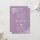 Diese schöne Hochzeitseinladung zeichnet sich durch ein schlichtes und dennoch elegantes Design aus, das auf einem lila, lavender oder staubigen, lila Hintergrund mit zarter Schriftzeichen und einem fett weißen, blumengeschmückten Filigree in den Ecken steht. Die Farben sind perfekt für eine Winterfeier.