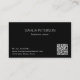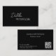 Moderne und berufliche schwarze Visitenkarte mit einem einfachen und minimalen Design mit Ihrem Namen in einem eleganten Drehbuch und zeitgenössischen Sans Serif Schriftart. Die Rückseite hat Ihre Kontaktdaten und optionalen QR-Code in einem minimalistischen Layout. Wenn Sie es vorziehen, kann der QR-Code im Entwurfstool entfernt werden.