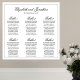 Dieses dezente und doch schöne 6-Tisch-Sitzplan hilft Ihren Gästen, ihre Tische an Ihrem Hochzeitsempfang zu finden. Das schlichte Schwarz-Weiß-Design bietet ein schnelles Skript für die Namen des Ehepaares sowie für die Tischnummern, mit einem dünnen Rand um den Rand. Elegant und raffiniert.