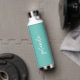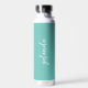 Moderne Wasserflasche mit einem schlichten und minimalistischen Design mit Ihrem Namen in einem eleganten Drehbuch über einen aquamarin-türkisfarbenen Hintergrund. Ein niedliches Design perfekt für ein Mädchen.