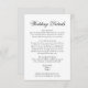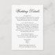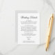 Diese Umschließkarte ist der perfekte Weg, um Ihren Gästen wichtige Informationen zu geben, die nicht auf die formelle Einladung passen. Die vorgeschlagenen Informationen beinhalten Details zum Empfang, Unterkunft, Transport, Geschenkregister und Website. Das Schwarz-Weiß-Design ist einfach, aber elegant mit einem laksigen Skripttitel. Die Rückseite der Karte ist blassgrau.