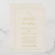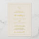 Traditionelle Goldfolie Hochzeitseinladung mit einem einfachen Design, das Ihr Monogramm zusammen mit Akzenten Wörtern in einem eleganten Skript über einem Elfenbeinhintergrund zeigt. Diese klassische Hochzeitseinladung ist ideal für eine feierliche Hochzeit.