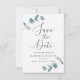 Einfache Eukalyptus-Blätter und kalligraphische Ho Save The Date