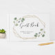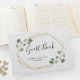 Dieses minimalistische und trendige Gästebuch für Hochzeiten oder Brautpartys bietet romantische Aquarellbilder-Eukalyptusbäume und Blattwerk auf einem Imitat mit geometrischen Rahmen. Ein atemberaubender und schlichter Look für Ihre moderne Hochzeit.