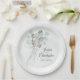 Diese schönen Teller sind mit einem rustikalen handgemalten Aquarell-Design mit einem rustikalen Bouquet in den Tönen von Eukalyptus-Blätter und Lavendel-Blume in den Schattierungen lila und Salbei grün. Das elegante und dennoch schlichte boho-schicke Design umfasst die Namen des Ehepaares in extravaganter Schrift sowie das Hochzeitstag. Ideal für einen Empfang im Freien oder im Hinterhof.