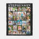 Erstellen Sie Ihre eigene Farbspeichertüte für eine Familie oder eine Person, indem Sie diese leicht hochzuladende Collage-Vorlage für das Foto mit 30 quadratischen Aufnahmen verwenden und mit einem Familiennamen oder einem anderen benutzerdefinierten Text in Ihren Schriftart-Stilen und -Farben personalisiert (mit weißem Foto auf schwarzem Hintergrund dargestellt). BLANKET OPTIONS: Die Probe wird im MEDIUM 50x60" Fleece Decke gezeigt - andere Größen sind auf der Bestellseite erhältlich oder werden auf eine Sherpa Decke oder ein anderes Produkt übertragen. HILFE: Bitte kontaktieren Sie den Designer, bevor er über die Registerkarte Zazzle Chat MESSAGE (Zazzle-MESSAGE) bestellt wird, um Hilfe bei der Änderung oder Personalisierung des Designs, bei Farbänderungen, bei der Größenänderung oder der Übertragung des Designs auf ein anderes Produkt zu erhalten. E-Mail: makeitaboutyoustore@gmail.com