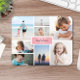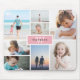 Foto Mousepad, wo Sie acht eigene Fotos in einer minimalistischen Collage hinzufügen können. In der Mitte, vor einem rosa Hintergrund, fügen Sie Ihren Familiennamen und Initial.