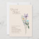 Einfache farbige Wildblume Blumenplot Drehung Hochzeit Save the Date vertagt Karte - Minimalistische botanische Eleganz mit Whimsical Touch. Feiern Sie die Blüte der Liebe mit unserer charmanten Hochzeitszettel-Drehung, speichern Sie die Dattelkarten mit einer einfachen, aber lebendigen Darstellung farbenfroher Wildblumen. Das minimalistische Design spiegelt das Wesen der natürlichen Schönheit wider und ermöglicht es den Wildblumen, in diesem botanischen Meisterwerk die Bühne in den Mittelpunkt zu rücken. Genießen Sie den skurrilen Reiz dieser einzigartigen Drehung, speichern Sie die Dattelkarten, die sich ideal für Paare eignen, die eine boho-Touch zu ihrem besonderen Tag suchen. Mit farbenfrohen und eleganten Farbtönen verkörpern diese Wildblumen die Drehung der zeitgenössischen rettete, die den Zauber Ihrer Hochzeit in einem fröhlichen und minimalistischen Stil verkörpert.