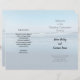 Blue Water gefaltete Hochzeitsprogramme für eine einfache Zeremonie am Meer. Ein Hintergrundbild eines Strandes bei Ebbe und Meereswellen nach draußen ist der Hintergrund für Text auf beiden Seiten von 8,5 x 11 Zoll gerecycelt Papier (oder wählen Sie einen anderen Typ). Text wird für die Vorderseite des Programms und drei weitere Seiten hinzugefügt. Papier muss nach dem Kauf gefaltet werden. Die erste Seite hat einen Titel, Namen von Paaren im mutigeren Text und einen Ort für Datum, Uhrzeit und Ort der Veranstaltung. Auf der Rückseite des Programms kann ein Text angezeigt werden, in dem ein Beispiel "Dankeschön" angezeigt wird. Innen verlassen ist die Reihenfolge der Zeremonie und innen rechts ist die Liste der besonderen Menschen, wie Eltern, Beamte und die Hochzeitsfeier. Erstelle dieses Programm, das für alle Paare geeignet ist, um eine kleine Hochzeit im Sand zu verbringen.