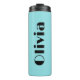 Einfach minimalistisch und stilvoll türkisfarben und schwarz wärmer Tumbler mit Ihrem Namen in einem lustigen Retro-Text. Vollständig editierbar, einschließlich der Wäscherkorb-Basisfarbe, Text, Farbe, Größe und Stil. Wählen Sie "Personalisieren Sie diese Vorlage", und nehmen Sie Ihre gewünschten Änderungen vor, oder Sie können diesen Schuster "wie besehen" bestellen. Der Name Olivia wird in schwarzem Retro-Text auf einem türkisfarbenen Trommel mit schwarzem Deckel dargestellt. Von 369MyName.