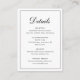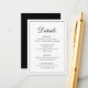 Traditionelle Hochzeitskassenkarte in klassisch schwarz-weiß mit einem einfachen Design mit "Details" in einer eleganten Kalligraphie innerhalb eines dünnen Randes. Die Rückseite ist schwarz. Die Vorlage ermöglicht Ihnen, wichtige Informationen über Ihren besonderen Tag zu teilen. Dieses elegante Design ist perfekt für eine formelle Hochzeit.