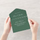 Mit diesem stilvollen und zeitlosen Simple Formal Minimalistische Elegant Wedding All in One Einladung können Sie Ihren besonderen Tag stilvoll ausklingen lassen. Das schlichte und dennoch klassische Design dieser Einladung zeichnet sich durch atemberaubende Skripttypografie vor dem trendigen grünen Hintergrund aus, die Ihrer Hochzeitsankündigung eine Touch von Eleganz verleiht. Mit seinem minimalistischen Design wird diese Einladung perfekt zum Set Ihrer Hochzeitsfeier einladen. Das All-in-One-Format sorgt dafür, dass Ihre Gäste alle Informationen, die sie benötigen, jederzeit zur Hand haben, einschließlich des QR-Codes, um direkt auf Ihre Website UAWG. Sagen Sie "I do" zu dieser minimalen und schicken Einladung und machen Sie Ihre Hochzeitsankündigung auffällig! Entsprechende Elemente und elegantere Hochzeitseinladungen finden Sie in der Kollektion Green Modern Minimalistisch Elegant Wedding Einladungen.