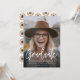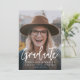 Eine einfache, moderne Script Graduate Foto Ankündigung Postcard für Ihre High School oder Uni-Abschluss. Fügen Sie Ihr eigenes stilvolles Foto hinzu. Foto mit Skriptgraduiertenschrift und weißes Typografie-Overlay auf Foto. Boho Muster auf der Rückseite der Einladung.