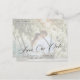 Moderne romantische Hochzeit speichern das Datum Postkartenvorlage mit Ihrem individuellen Foto in trendigen Imitaten vellum weißes transparentes Overlay und schwarz handgeschriebenes Kalligrafieschrift. +++++++++++ Einfach mit Ihren Details und Bildern auf beiden Seiten personalisieren!