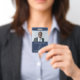 Einfache Mitarbeiter Foto ID Name Logo Navy Blue. Ein vollständig anpassbares Foto-ID-Abzeichen, das einfach mit Ihrem Foto, Logo und Text personalisiert werden kann. Tauschen Sie Ihr Foto (landschaftsorientiert) durch das Beispielbild und das Firmenlogo aus und personalisieren Sie den Text ganz einfach auf Ihre eigenen Daten. Sie können auch Ihre Rücksendeadresse auf der Rückseite hinzufügen, falls Ihre Karte verloren geht oder wenn Sie es wünschen, diesen Text löschen. Die Stile und die Farbe des Schriftartes können auch über die Option Weitere einstellen geändert werden, ebenso wie die Hintergrundfarbe.