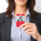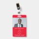Einfache Mitarbeiter Foto ID Name Logo Rot. Ein vollständig anpassbares Foto-ID-Abzeichen, das einfach mit Ihrem Foto, Logo und Text personalisiert werden kann. Tauschen Sie Ihr Foto (landschaftsorientiert) durch das Beispielbild und das Firmenlogo aus und personalisieren Sie den Text ganz einfach auf Ihre eigenen Daten. Sie können auch Ihre Rücksendeadresse auf der Rückseite hinzufügen, falls Ihre Karte verloren geht oder wenn Sie es wünschen, diesen Text löschen. Die Stile und die Farbe des Schriftartes können auch über die Option Weitere einstellen geändert werden, ebenso wie die Hintergrundfarbe.