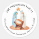 Einfache Krippe geben Name und Adresse zurück, Eine minimalistische Abbildung von Mary, Joseph und Baby Jesus in einem Manöver mit Ihrem Namen gebogen oben und Rücksendeadresse gekrümmt, unter denen Sie leicht personalisieren können.