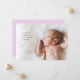 Diese Geburtsankündigung enthält einfachen Text mit Seitenorientierung. Die Rückseite bietet einen lila Hintergrund, der mit Platz für ein anderes Foto bearbeitet werden kann.